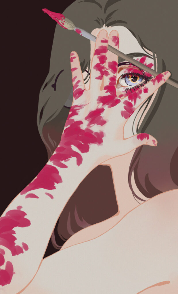 J’ai découvert les arts visuels dans mon enfance à travers les mangas et des animes : en particulier par l’épique fantastique “One Piece” de Eichiro Oda. Ma relation privilégiée avec ces médias s’est enrichie avec le temps. Parmi les œuvres qui m’ont particulièrement marquée, je citerais le drame fantastique et horrifique “Tokyo Ghoul” de Sui Ishida, les trillers psychologiques “Paprika” et “Perfect Blue” de Satoshi Kon, et la série de mangas d’aventures fantastiques intergénérationnelles “Jojo’s Bizarre Adventure” de Hirohiko Araki. Ce sont ces univers qui, les premiers, m’ont donné envie de dessiner.