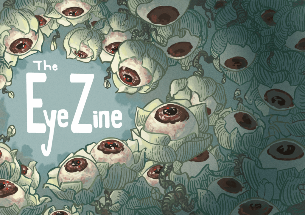 Entre humour, horreur et curiosité scientifique, ce zine parle de se reconnecter avec ses centres d’intérêts d’enfance — dans mon cas, ma vieille obsession pour dessiner des yeux bizarres.