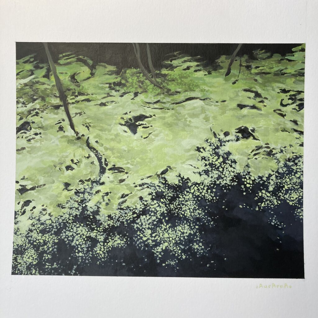 Les œuvres de cette collection sont des peintures de paysages semi-abstraits réalisés à l’acrylique sur papier. Toutes les illustrations sont liées par la couleur verte.