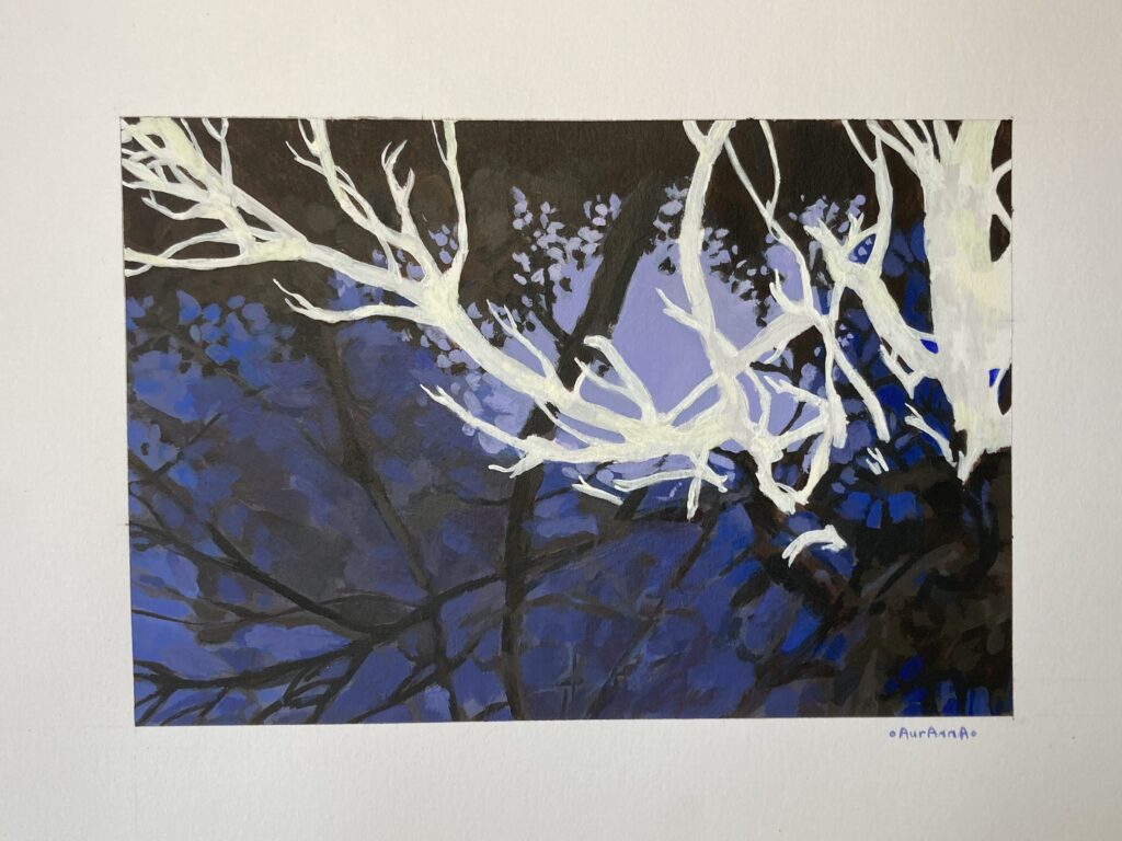 Cette collection est composée de peintures de paysages semi-abstraits réalisés à l’acrylique sur papier. Bien loin de représentations fidèles, ce sont des interprétations basées sur les pensées que ces scènes m’ont évoquées.